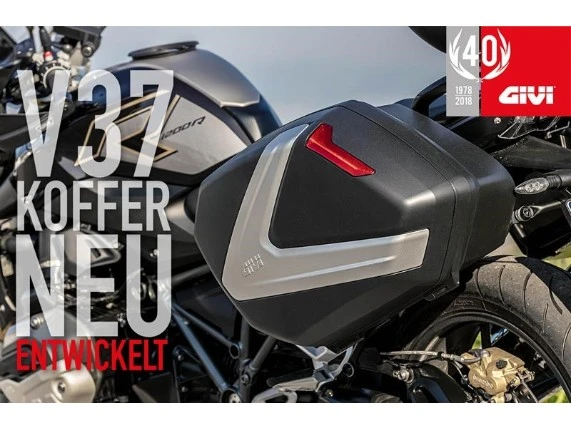 Wenn Sie auf der Suche nach einem Zubehör für Ihr Motorrad sind, fragen Sie sich immer, ob es zu der Ästhetik Ihres Motorrads passt oder nicht. Givi Motorradzubehör war schon immer die Lösung und in der Tat, wie alle Accessoires des Hauses, wurde der neue V37 Motorradkoffer bis ins kleinste Detail entworfen, wobei ein kompakter und dennoch eleganter Stil erschaffen wurde, ohne dabei die Funktionalität zu vernachlässigen.