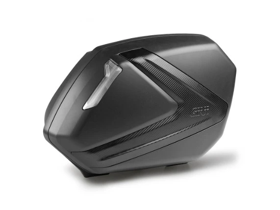 Der neue Motorrad-Seitenkoffer verfügt über ein innovatives Design und eine unverwechselbare Optik. Der zentrale Bereich zeichnet sich durch einen Einsatz aus, der an einen Pfeil erinnert und in opaken Silber- oder undquot;Carbonundquot; -Ausführungen erhältlich ist. Dieses aerodynamisch ansprechende Element, unterscheidet das Givi-Markenaccessoire von allen anderen im Umlauf!