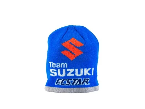 Suzuki Ecstar Mütze mit Suzuki Schriftzug und Logo sowie GSX-R-Logo. Perfekt für die kühle Jahreszeit.