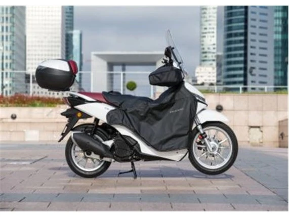 Diese Kniedecke für den Fahrer wurde so gestaltet, dass sie nicht nur perfekt zum eleganten Design des Belville passt, sondern Ihnen auch maximalen Komfort bietet. Die Liste der Vorteile ist lang! Sie hat wasserdichte Nähte, ist gefüttert, hat flatterfreie aerodynamische Verstärkungen, eine Innentasche zur Sitzbankabdeckung sowie eine Anti-Diebstahlsicherung und Reflektor-Einsätze. Dazu kommt noch eine clevere Bauchtasche, aus der Sie Schlüssel, Fernsteuerung für das Garagentor oder Tank- und Parkkarte leicht herausnehmen können! Exklusiv von Peugeot Motocycles.